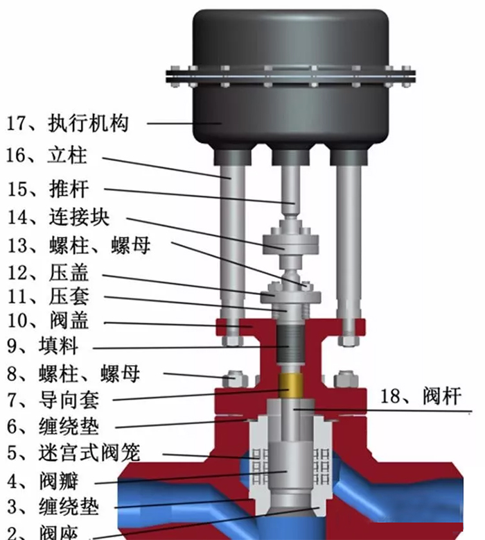 通過接收工業自動化控制系統的信號(如:4~20mA)來驅動閥門改變閥芯和閥座之間的截面積大小控制管道介質的流量、溫度、壓力等工藝參數。實現自動化調節功能。